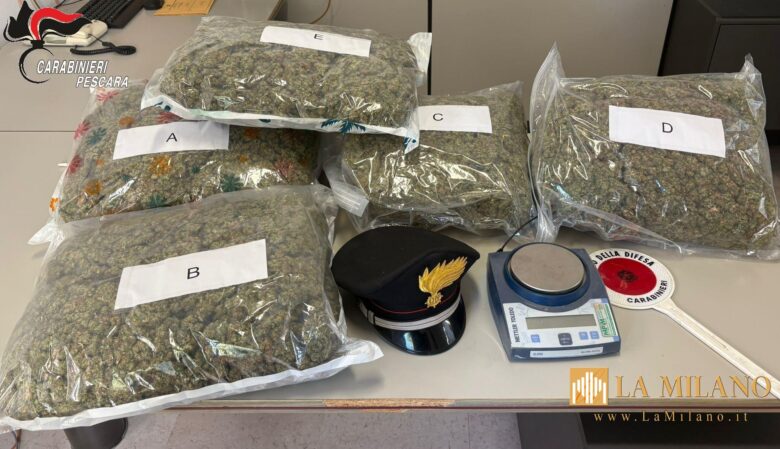 Pescara, maxi sequestro di marijuana: arrestato 44enne, trovati quasi 10 chili di droga in casa I Carabinieri del Nucleo Operativo e Radiomobile della Compagnia di Pescara hanno portato a termine un’importante operazione antidroga che ha condotto all’arresto in flagranza di reato di un 44enne di nazionalità italiana, incensurato. Da qualche tempo, a seguito di numerose […]
