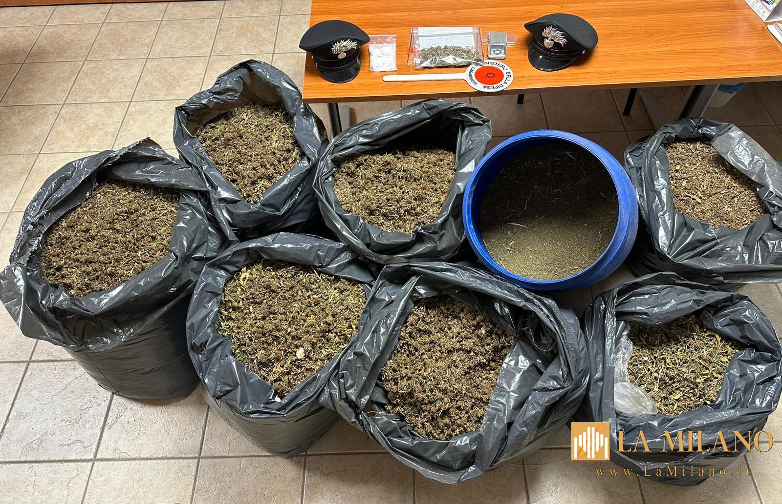 A Collecorvino (PE), i Carabinieri hanno arrestato un 27enne sorvegliato speciale sorpreso fuori Comune. Nella sua abitazione sono stati sequestrati 87 kg di marijuana triturata, 33 grammi di cocaina e un bilancino. L’uomo è accusato di spaccio e violazione delle misure.